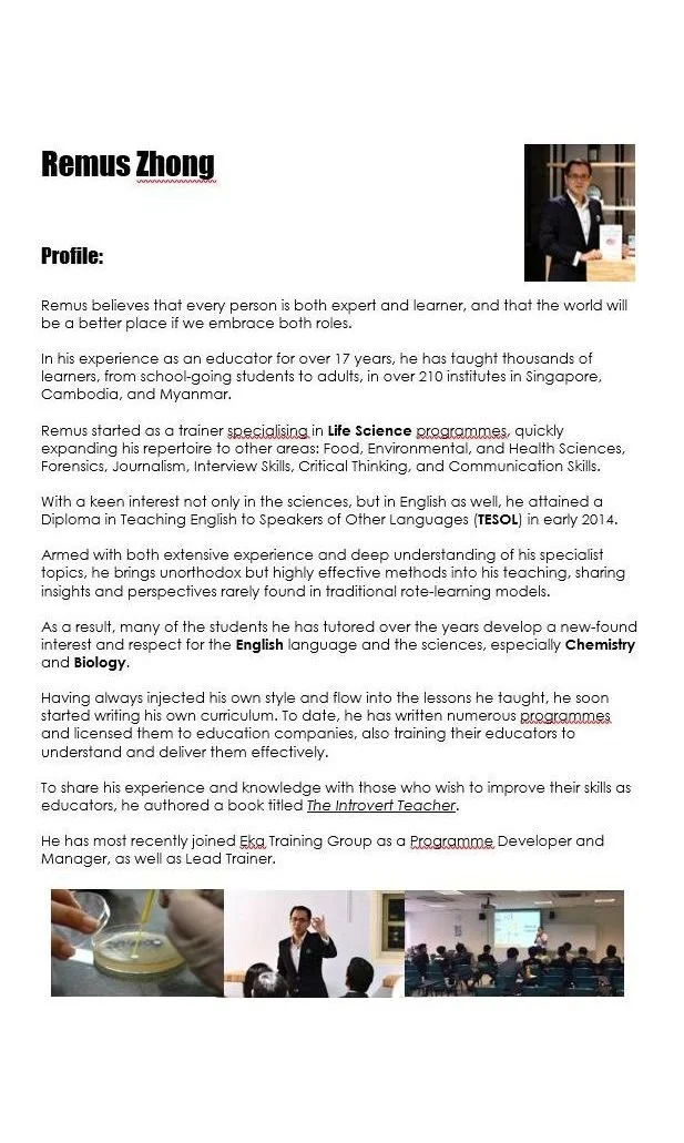 Profiles and Programme Portfolios of Remus Zhong